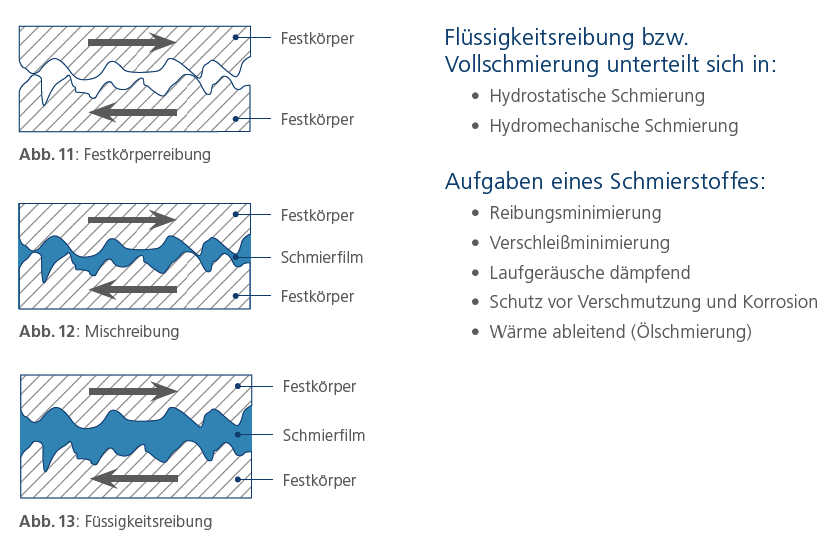 Reibungszustände in Kombination mit einem Schmierstoff: